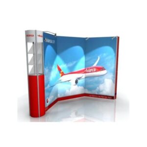 Descripción: Soporte metálico con ensamblaje manual para soportar gráficos en laminas plásticas, porta folletos anexo empacado en tula de lona
