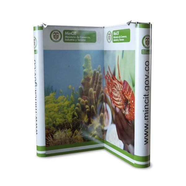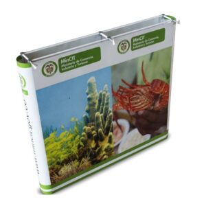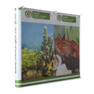 Descripción: Soporte metálico con ensamblaje manual para soportar gráficos en tela o en laminas plásticas, empacado en tula de lona
