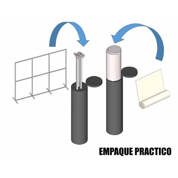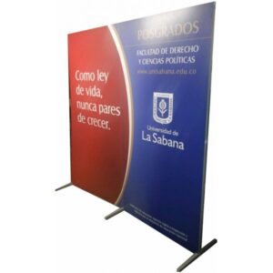 Descripción: Soporte metálico con ensamblaje manual para soportar gráficos en tela o en laminas plásticas, empacado en tula de lona